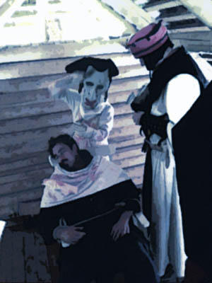 Die drei Gelehrten sind schon seit Tagen an der Ausgrabungsstätte und untersuchen die geistigen Leiden der Gräber auf deren Ursache. Viele können geheilt werden, aber je nach Stadium des Wahnsinns leider nicht alle. Ihnen wird durch die drei Gelehrten auf verschiedenste Arten geholfen, manch einer erhält einen Aderlass, andere müssen bittere Tränke zu sich nehmen und wieder Andren werden Heilzauber zuteil.